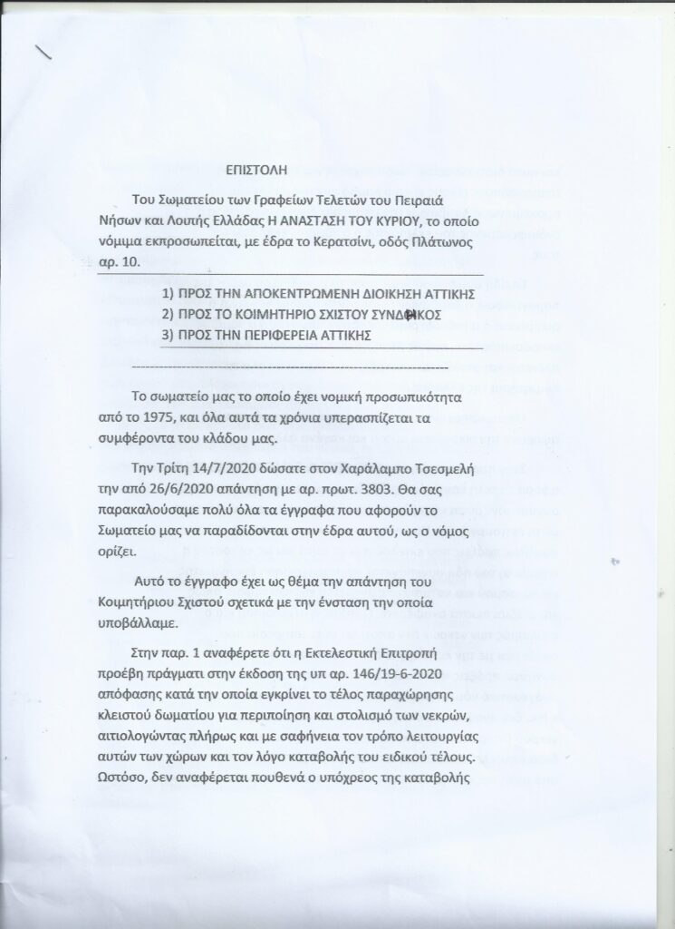 26 ΙΟΥΝΙΟΥ λάβαμε απάντηση από το Κοιμητήριο Σχιστού <<ΣΥΝ.ΔΗ.ΚΟΣ>>