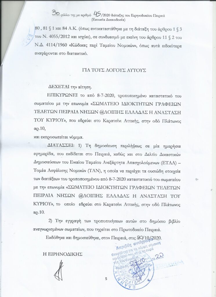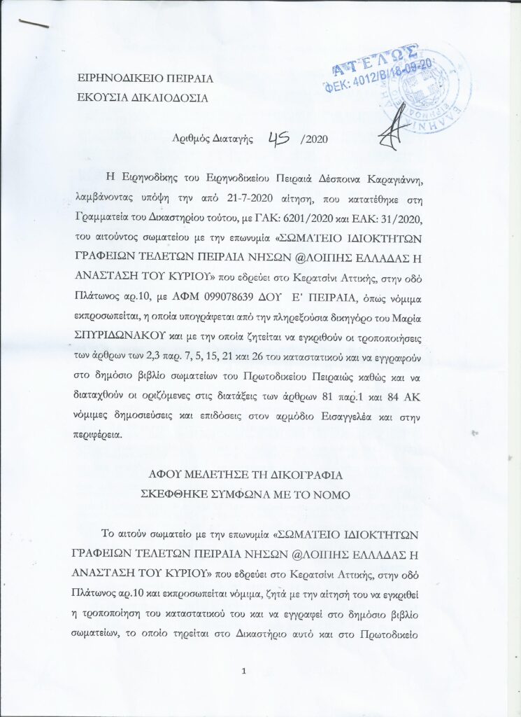 Ακολουθεί σε εικόνες η έγκριση τροποποίησης καταστατικού του Σωματείου μας καθώς και η δημοσίευση σε εφημερίδα.