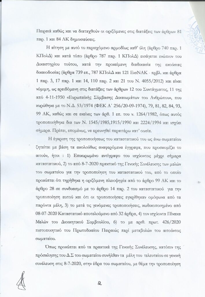 ΕΓΚΡΙΣΗ ΤΗΣ ΤΡΟΠΟΠΟΙΗΣΗΣ ΚΑΤΑΣΤΑΤΙΚΟΥ ΤΟΥ ΣΩΜΑΤΕΙΟΥ ΜΑΣ ΚΑΙ ΔΗΜΟΣΙΕΥΣΗ ΣΕ ΕΦΗΜΕΡΙΔΑ