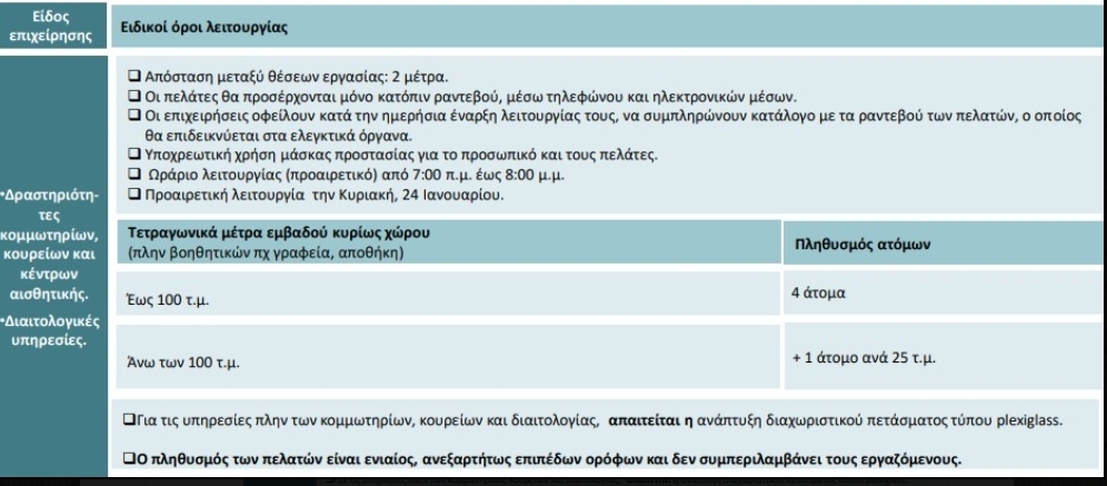 -Η επαναλειτουργία των επιχειρήσεων ξεκινά τη Δευτέρα και την Κυριακή 24 Ιανουαρίου θα λειτουργήσουν. Οι επιχειρήσεις θα λειτουργούν από τις 7 το πρωί έως τις 8 το βράδυ, με την αποστολή SMS και για δύο ώρες οι καταναλωτές.